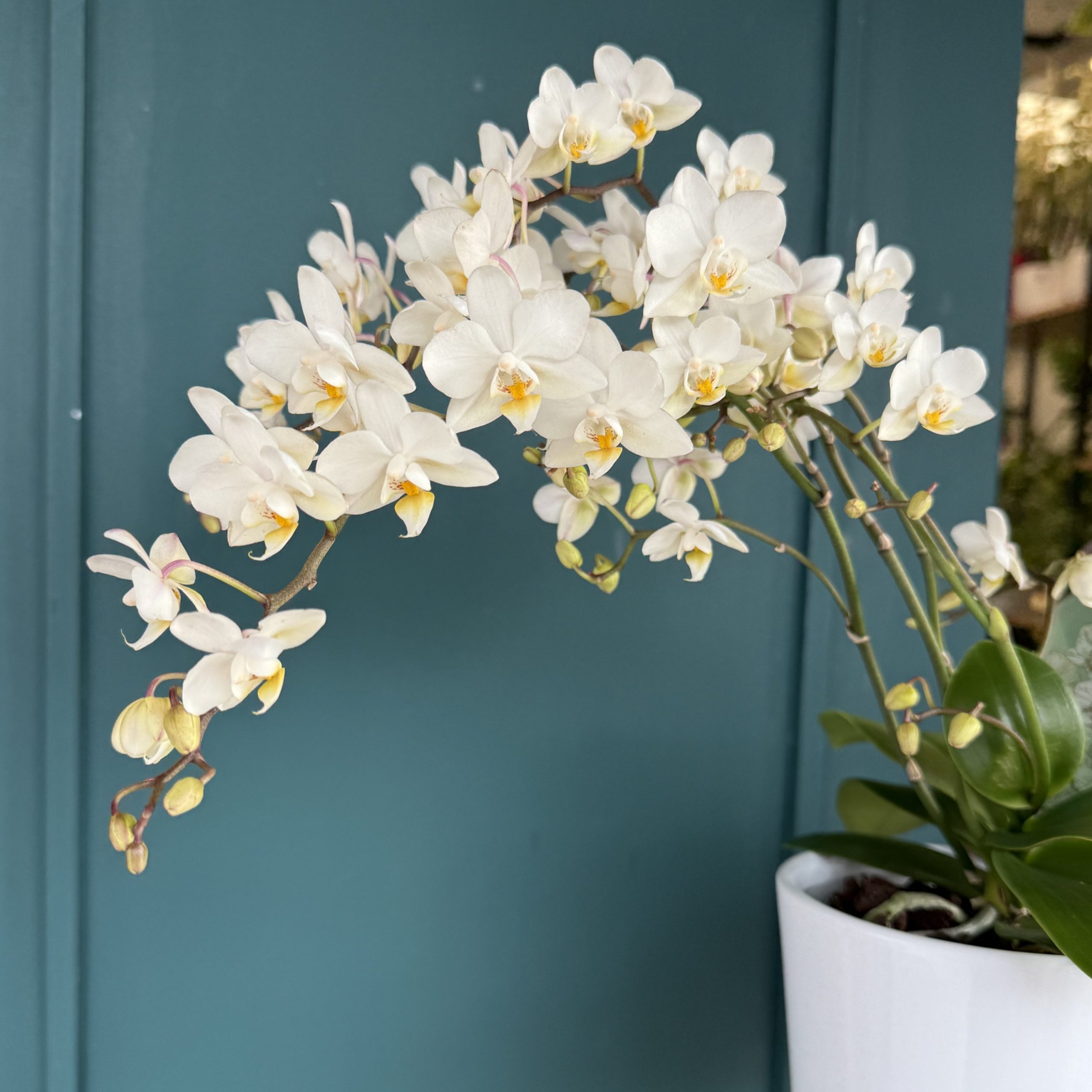 Phalaenopsis es un género de las comúnmente llamadas orquídeas. Planta de interior, color blanco
