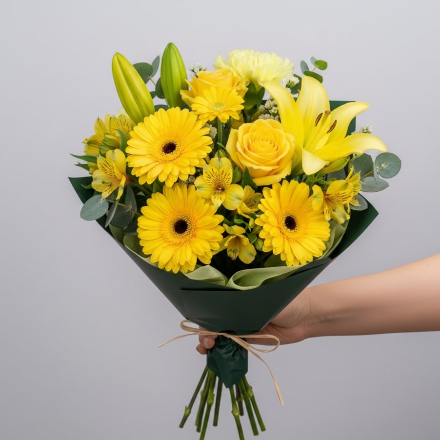 No incluye jarrón, ni decoración (fotos orientativas). La tipología de las flores puede variar según temporada. Con flores, verdes y rellenos disponibles. Se entrega envuelto en papel y cinta de regalo.