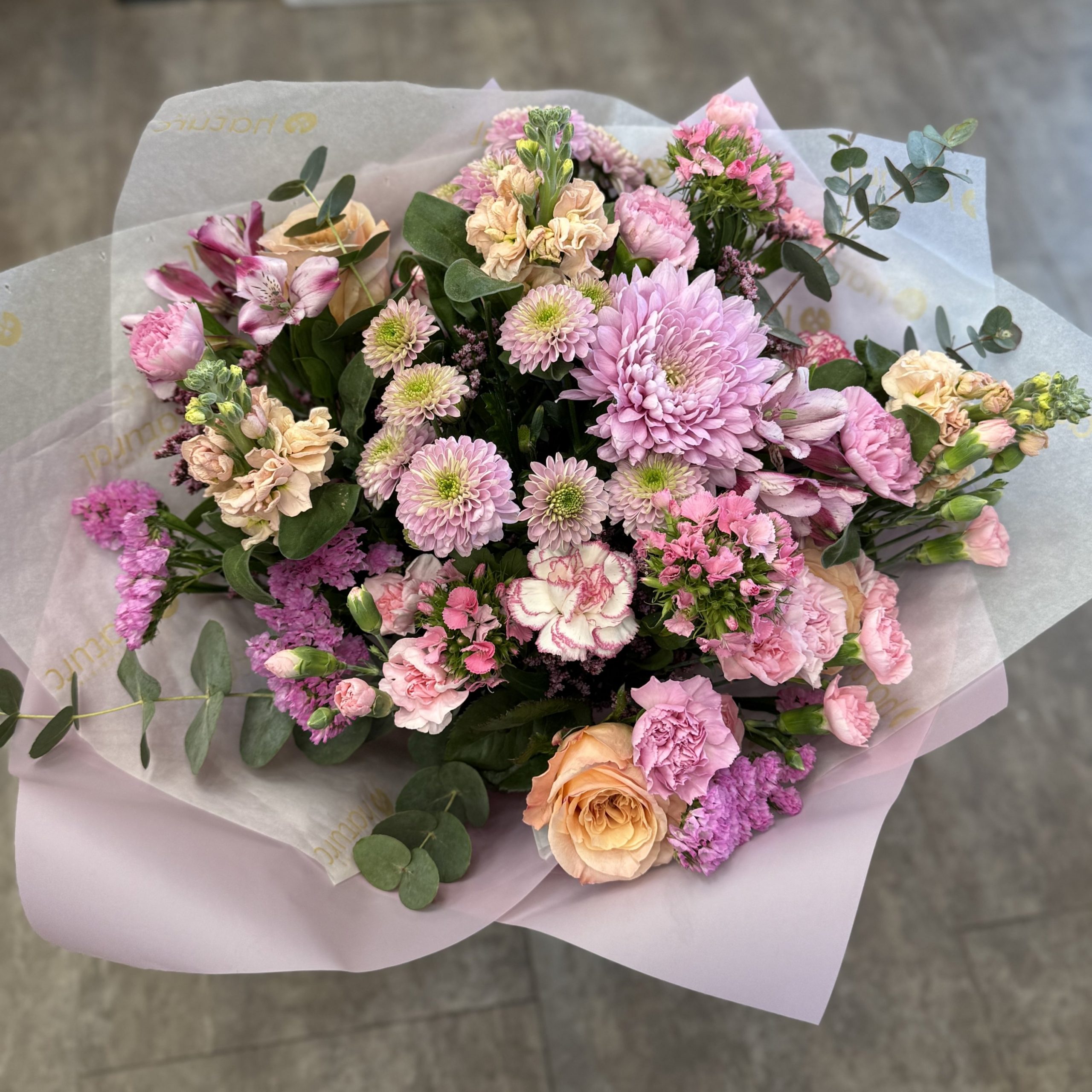 No incluye jarrón, ni decoración (fotos orientativas). La tipología de las flores puede variar según temporada. Con flores, verdes y rellenos disponibles. Se entrega envuelto en papel y cinta de regalo.