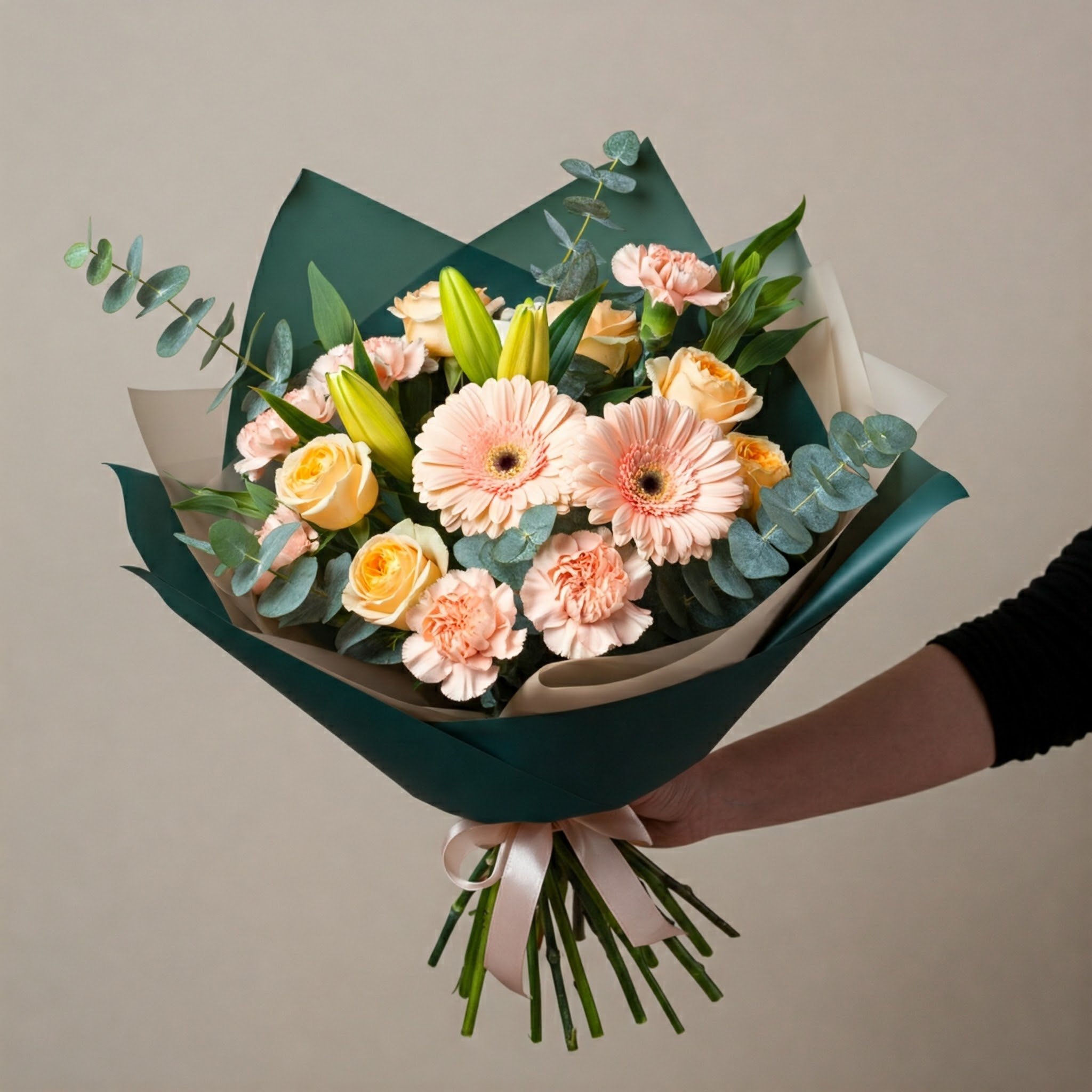 No incluye jarrón, ni decoración (fotos orientativas). La tipología de las flores puede variar según temporada. Con flores, verdes y rellenos disponibles. Se entrega envuelto en papel y cinta de regalo.